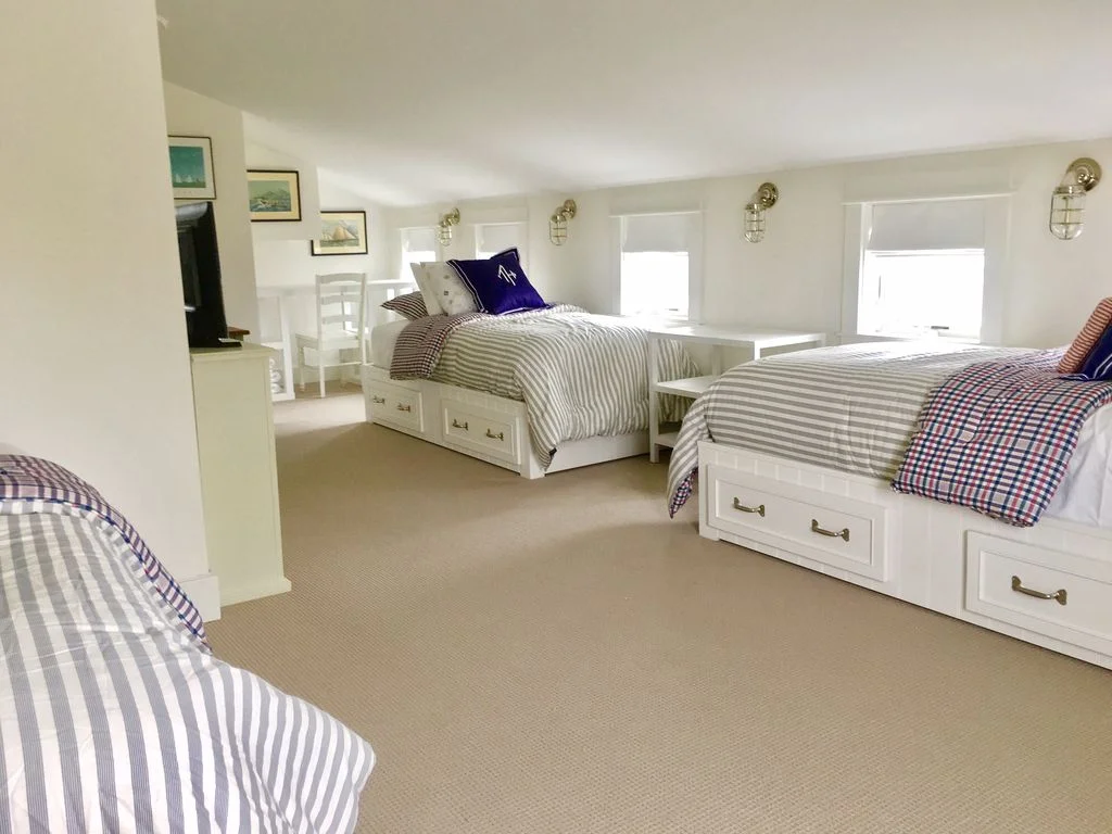 Located on a quiet residential street just off Cliff Road, this renovated 5-star property is the ideal place for your next Nantucket vacation, whether you have a family trip, a week away with friends or a wedding on the horizon. The house features an open living, dining and kitchen area; a kitchen with quartz countertops and stainless steel appliances; 6 bedrooms and 5.5 baths, and private outdoor living and dining space. The house is great for families, with plenty of separate spaces for everyone. Town is a short 10-minute walk, with access to all of Nantucket's wonderful shops, restaurants and activities. Steps Beach is a 10-minute walk across Cliff Road, and Jetties Beach, with outdoor dining and public tennis courts, is an easy 15-minute walk. The Westmoor Club and Something Natural are around each corner. The property is in a great location for people who like to bike, with the Cliff Road bike path close by. Nantucket's network of other bike paths are easy accessible as well. Public golf courses are short drives away, as are Nantucket's natural sites.